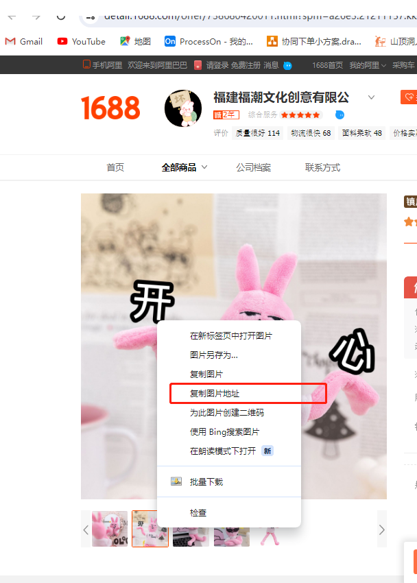 3.图片:像下图这样在阿里巴巴找到客户需要的商品,点开详情,右键,复制图片链接,粘贴进我们的模板表格里;