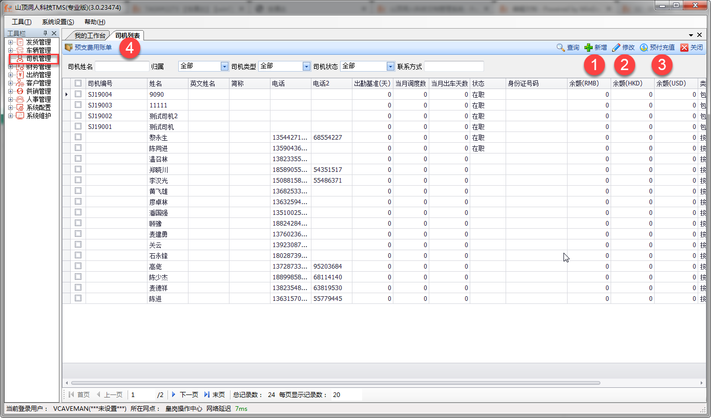 针对本公司的司机的管理,支持司机预支款费用的登记和报销记录的查看