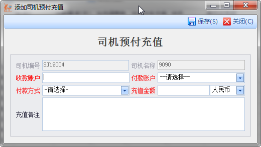 • 充值金额:司机预支的金额(此金额可以在和司机对账的时候,通过预支款进行抵扣)