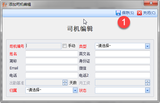 1. 第一:点击左侧菜单栏司机信息,点击新增,弹出如下界面,点击保存即可