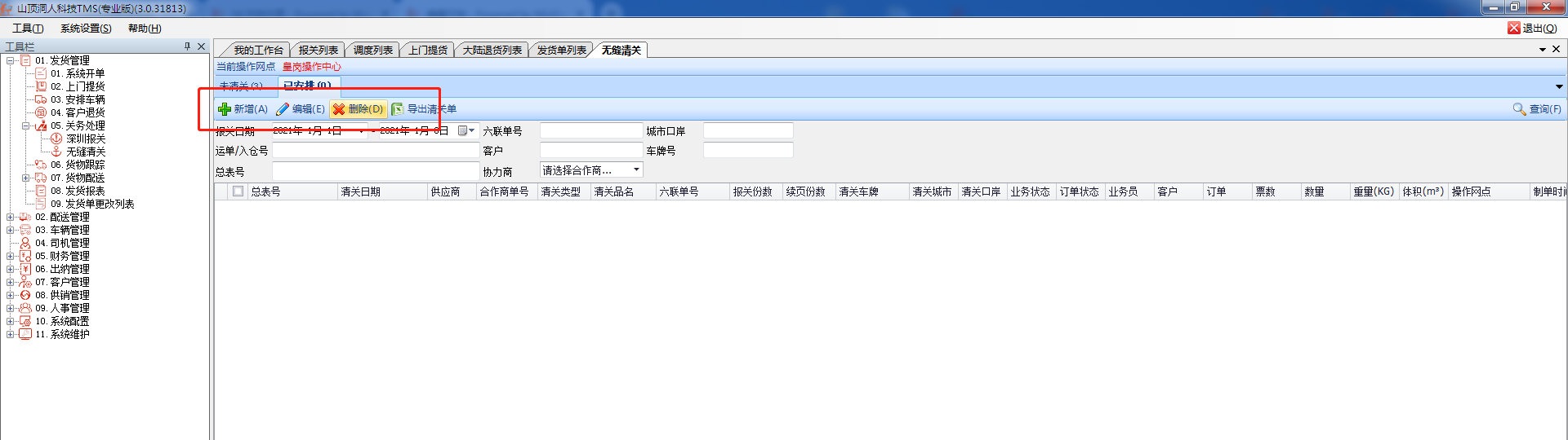 这些都设置完后,可以点到已安排中查看清关的订单,这里可以修改、删除、导出订单。