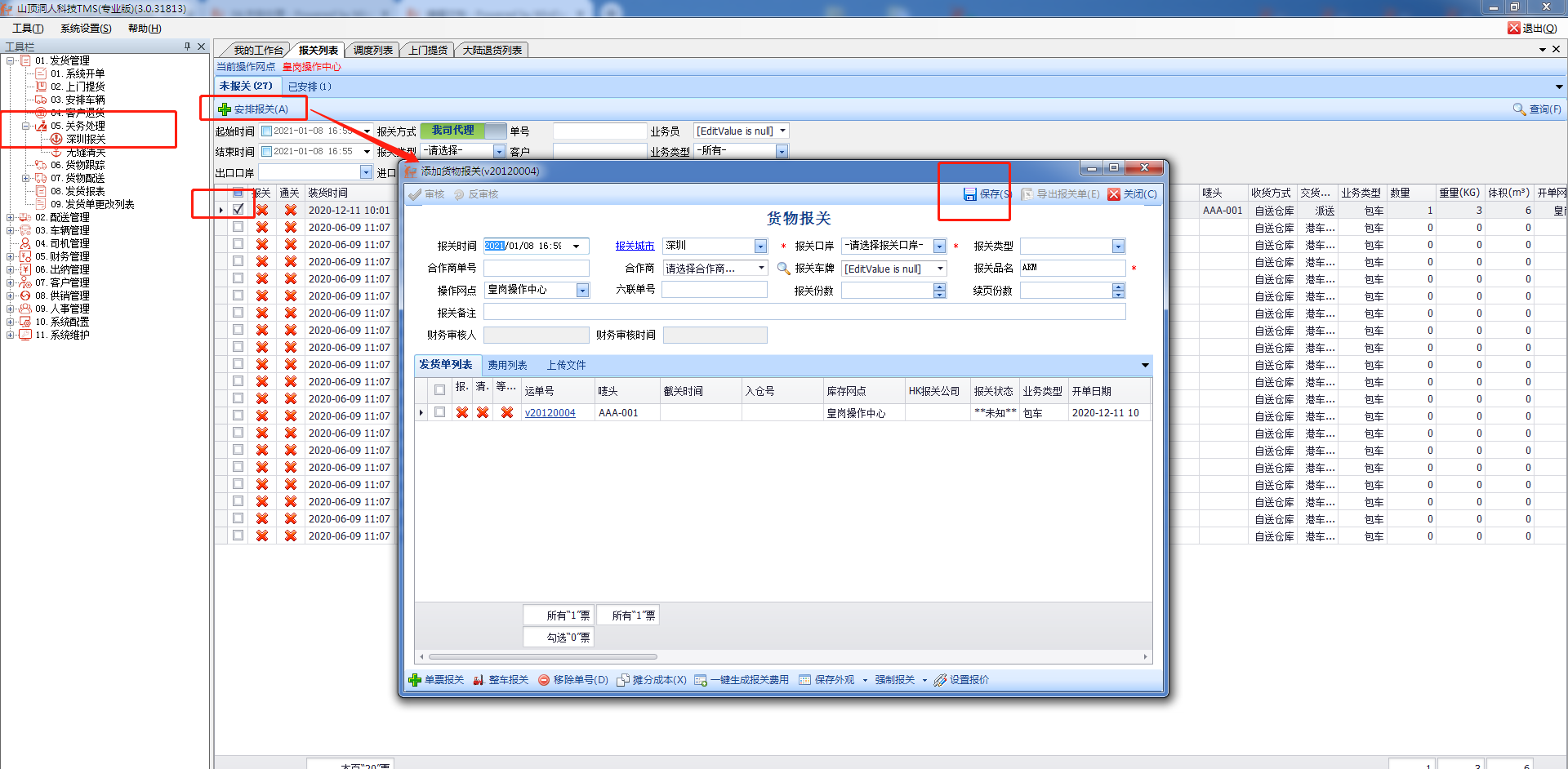在这里这个报关和安排车辆中的报关是一样的,只是有两个操作的地方。